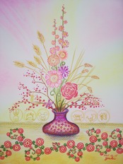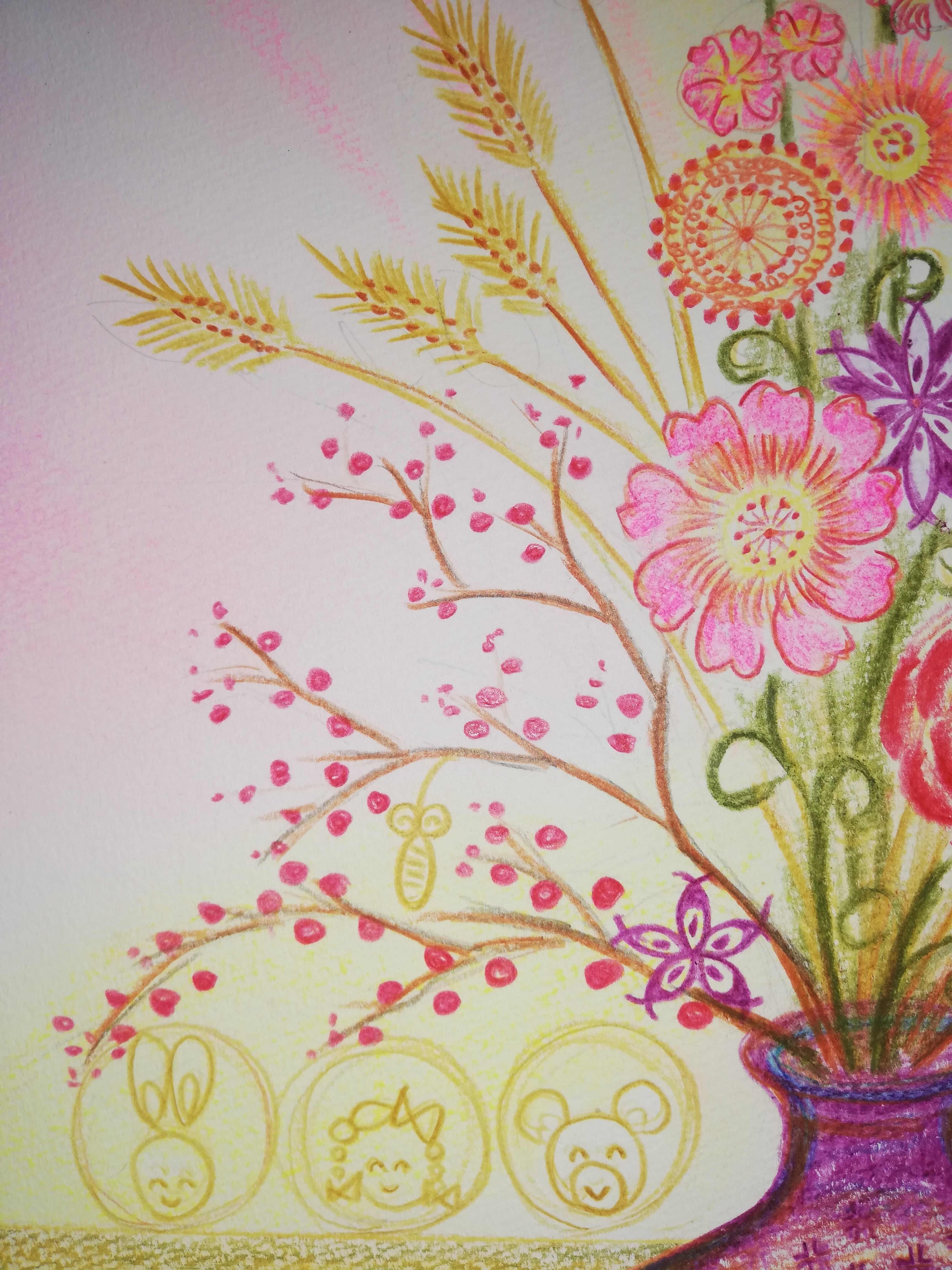 絵はF6サイズ額縁はマットを入れずにシンプルに木製の額縁を付けます
