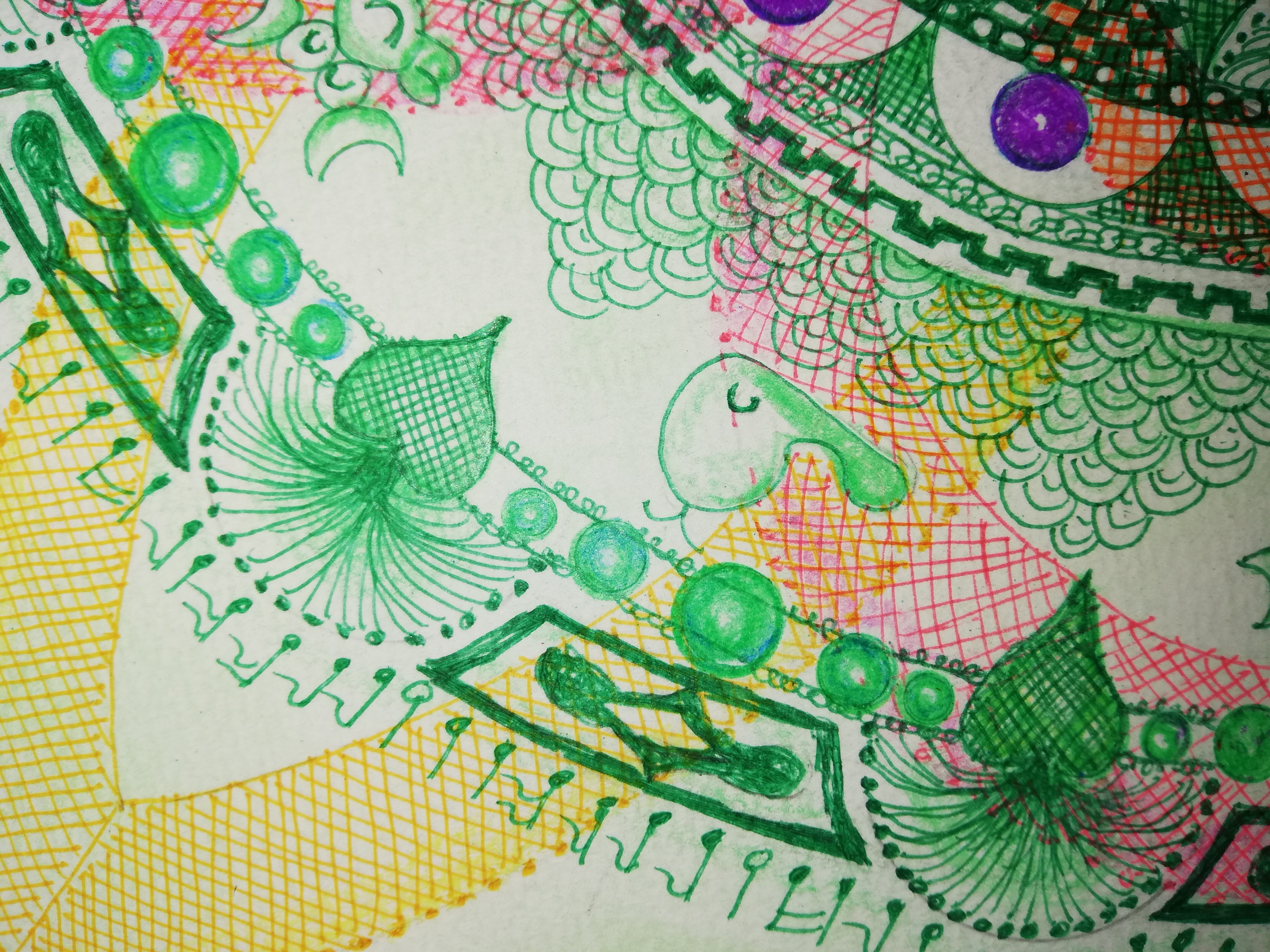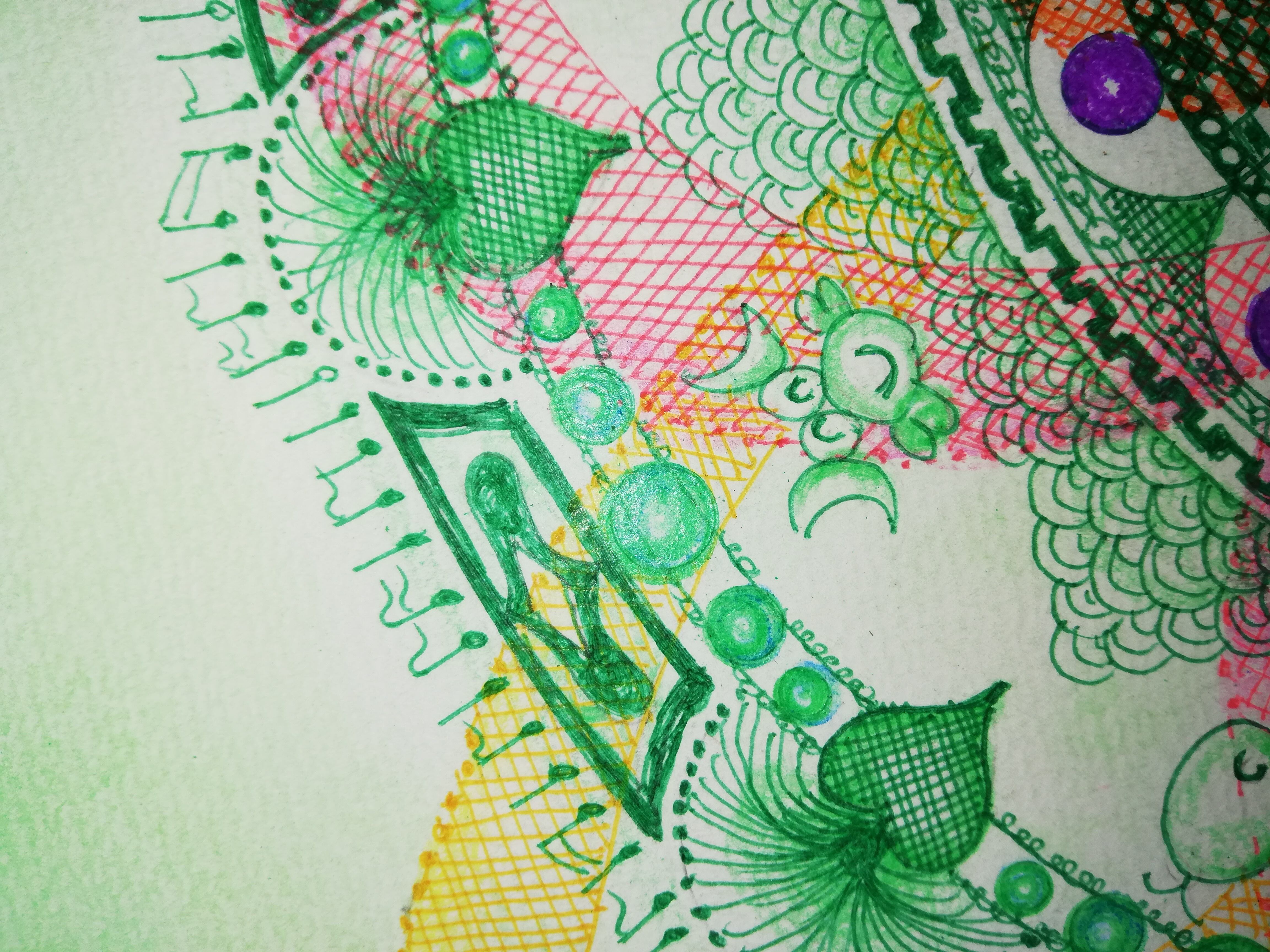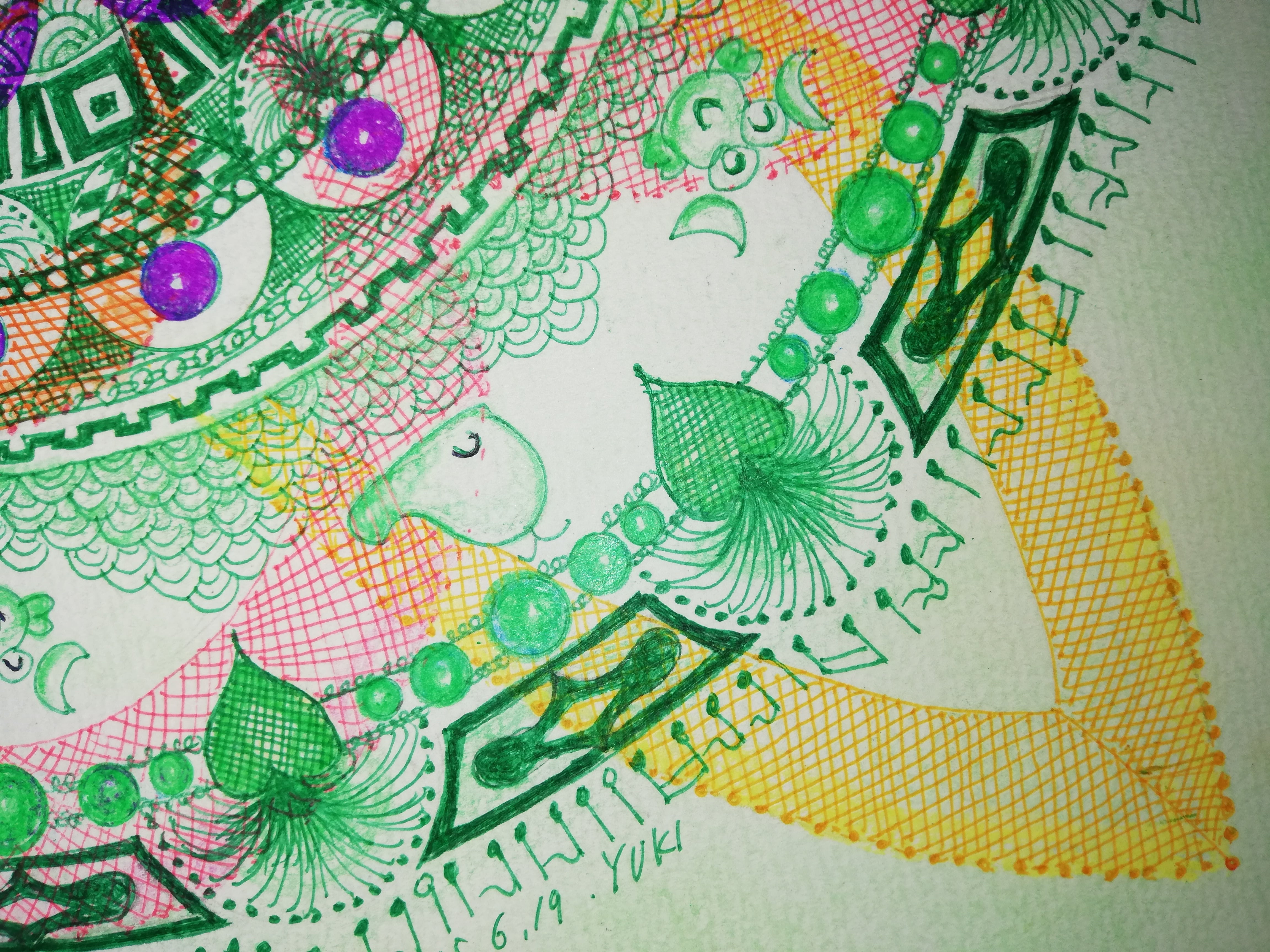 0.5mmのペンとパステル画です