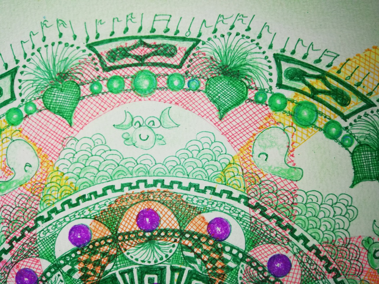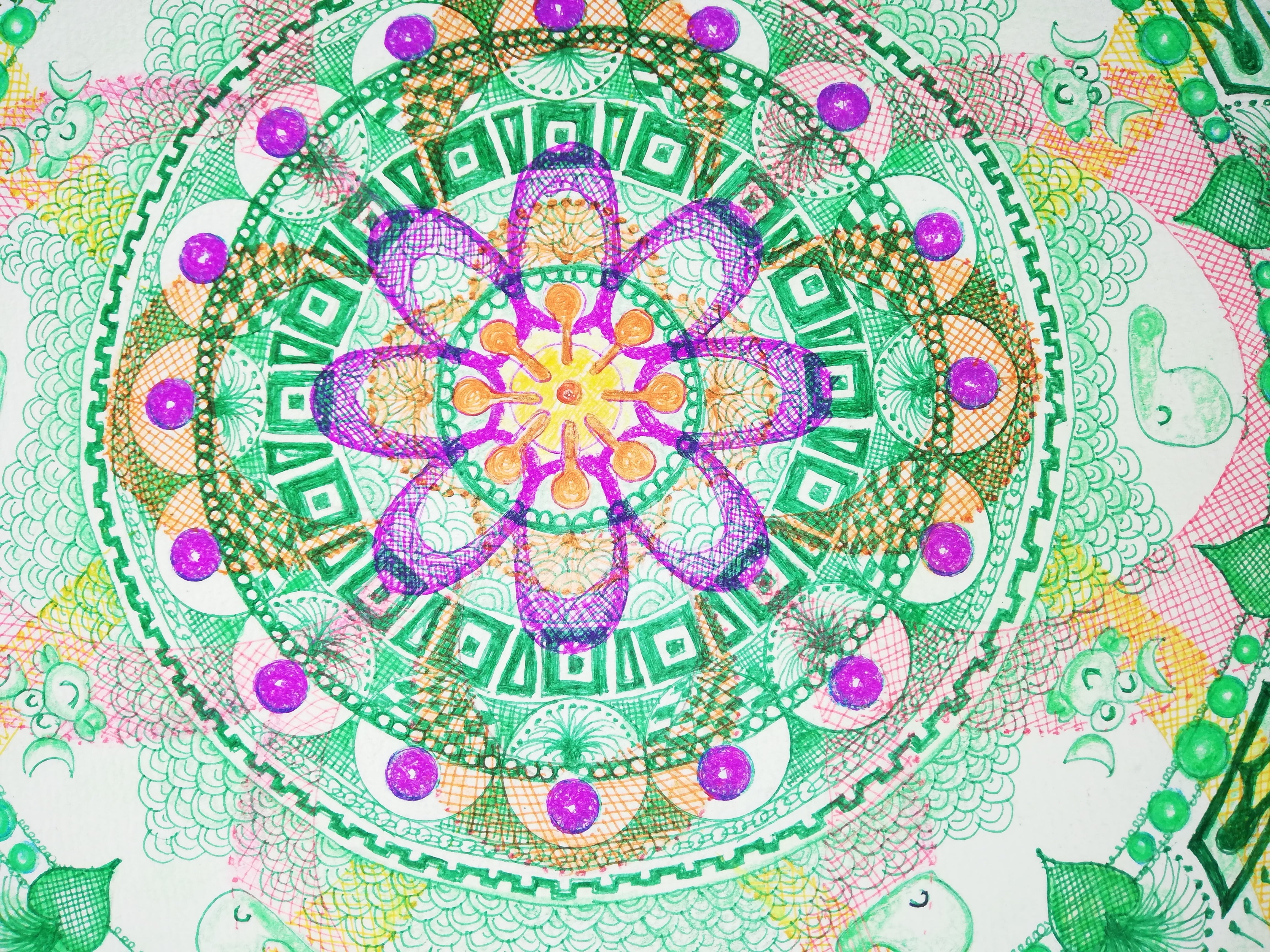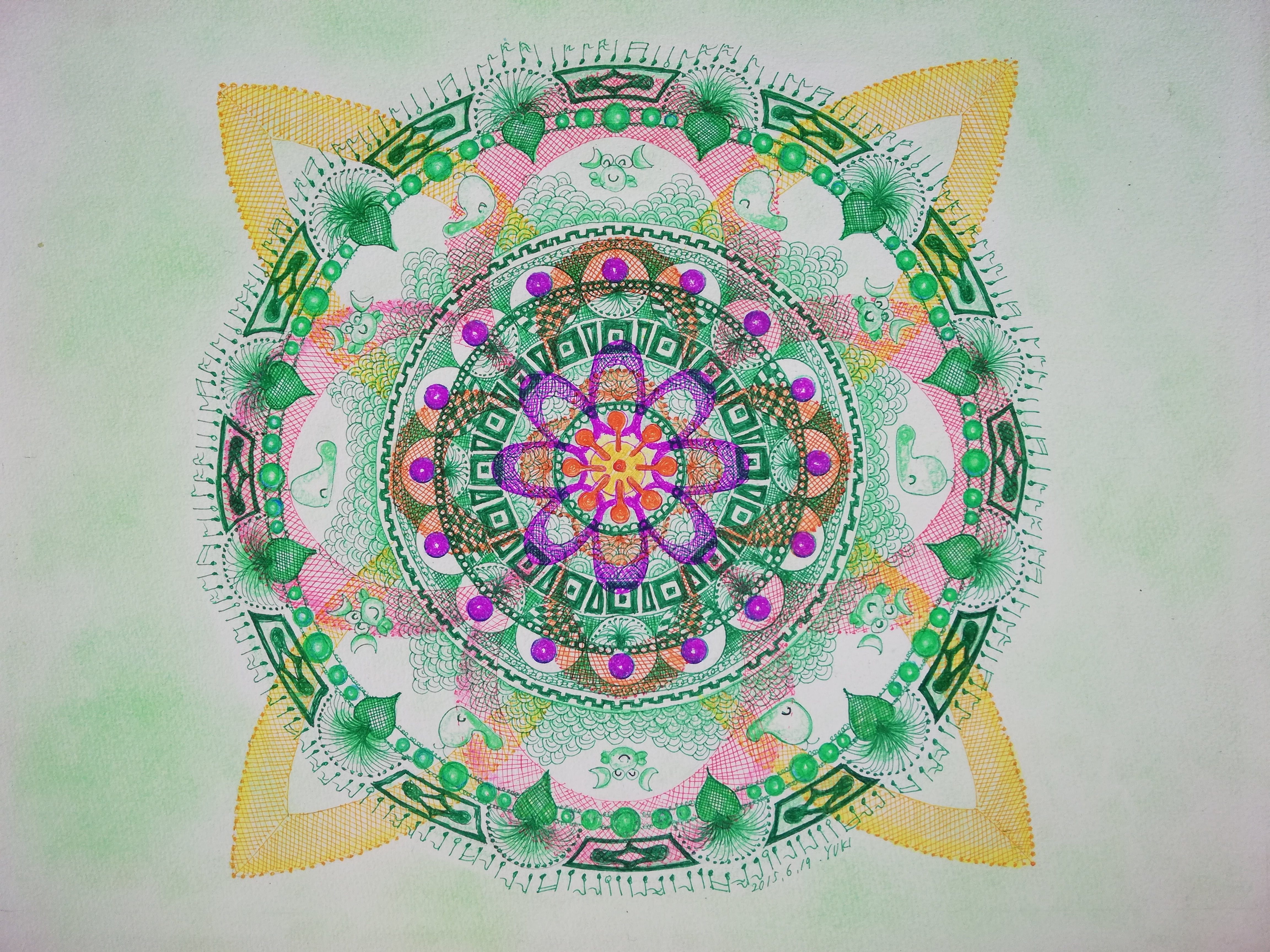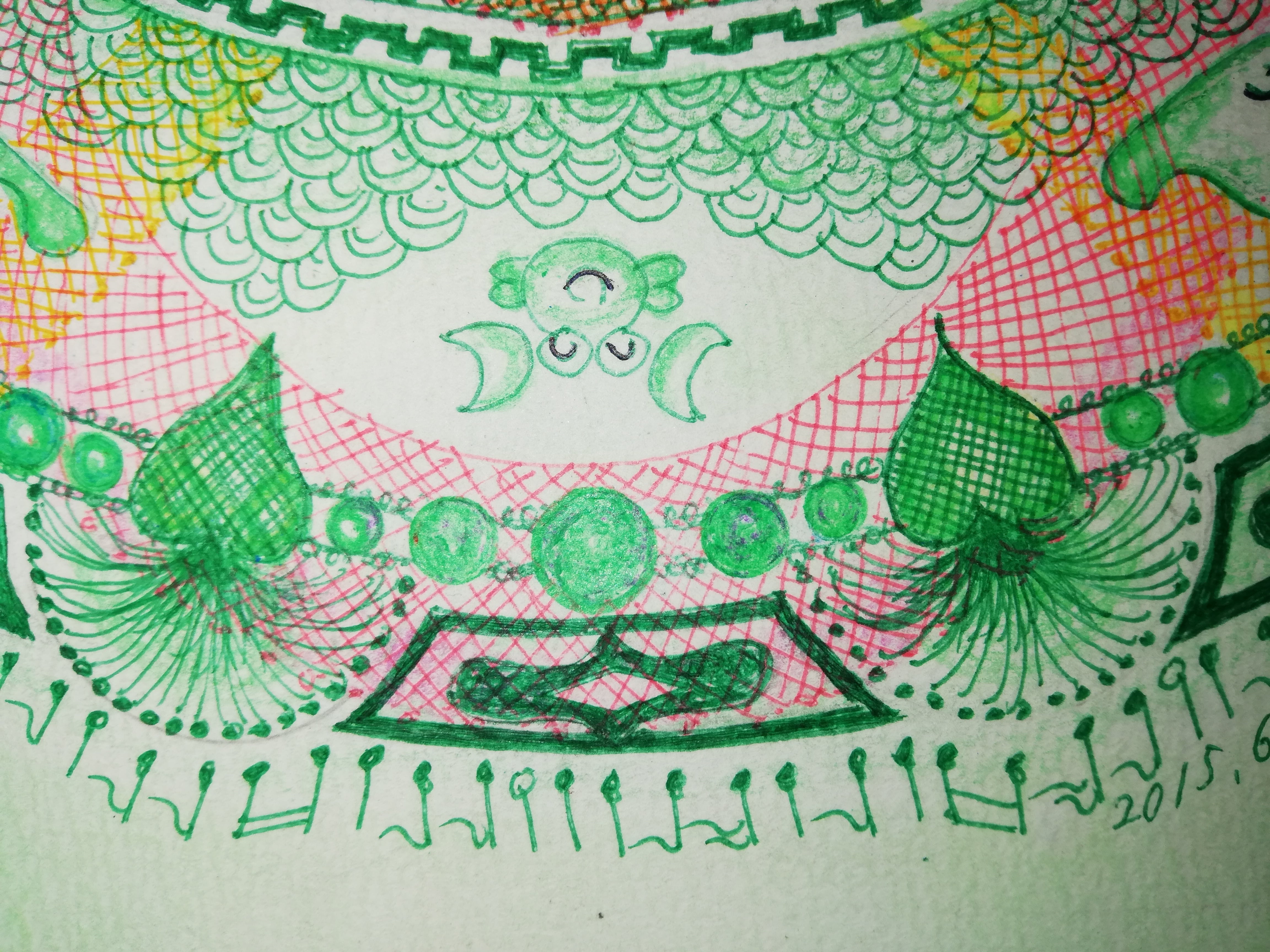 0.5mmのペンとパステル画です