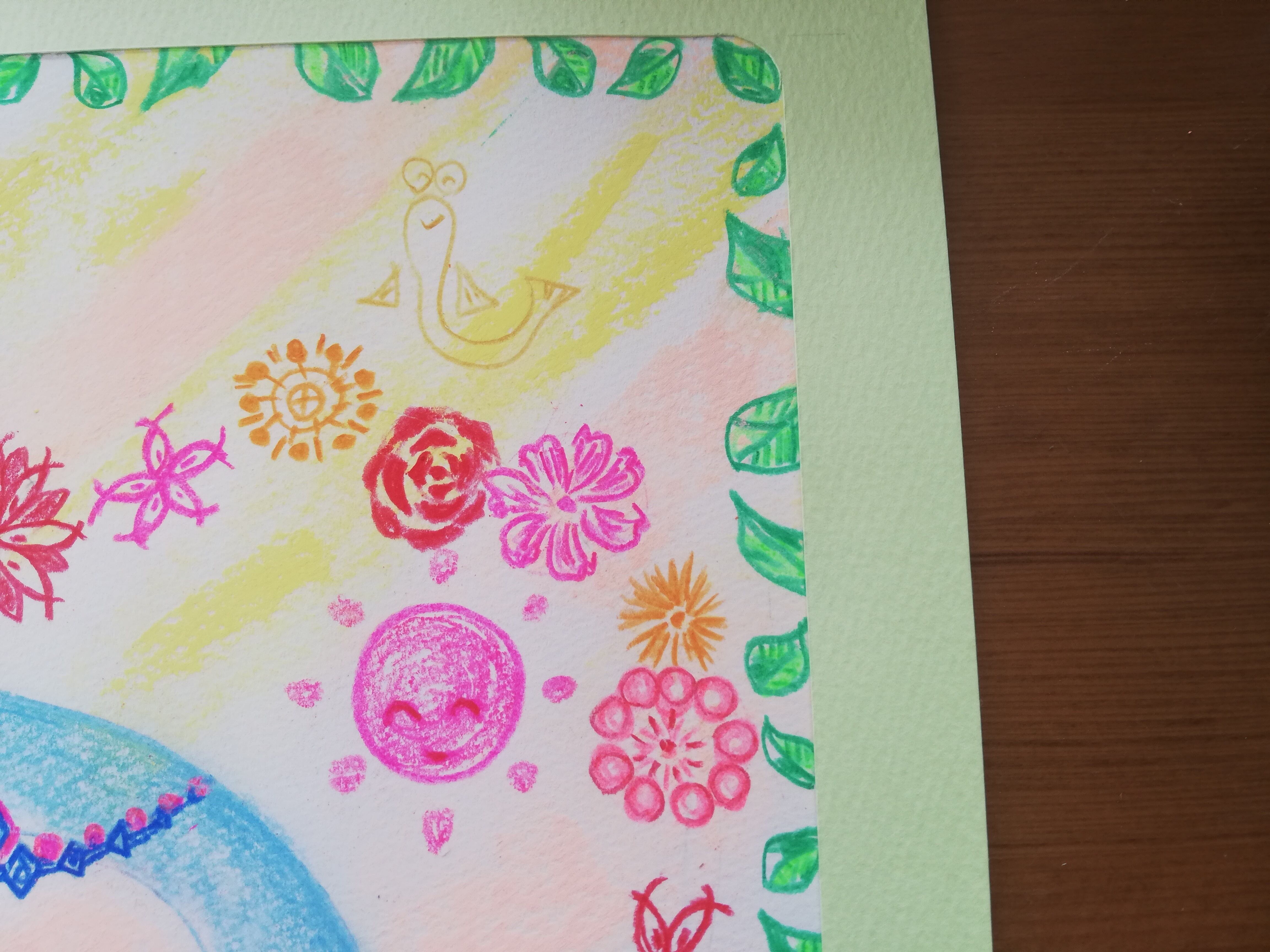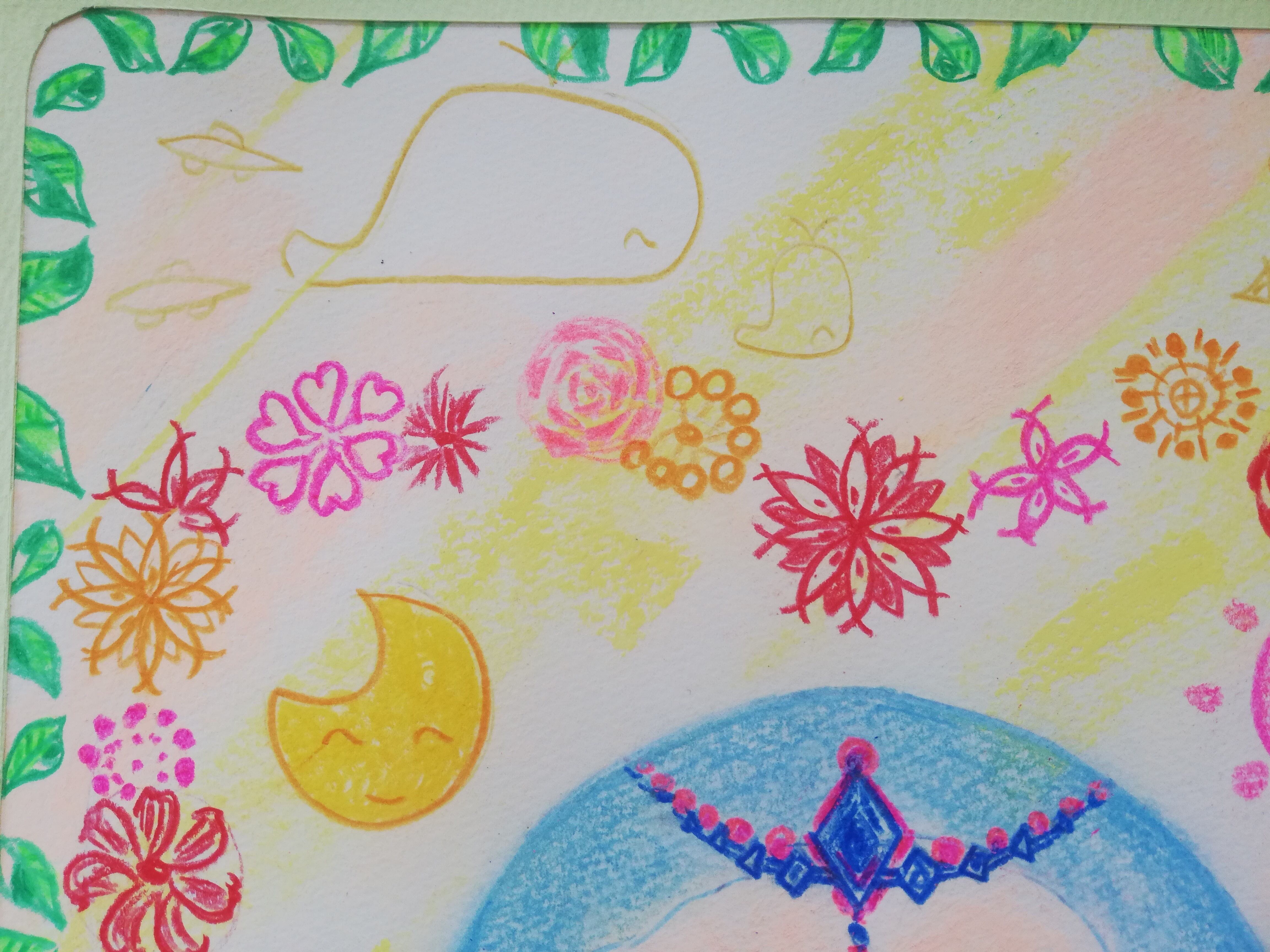 絵は色鉛筆とパステル、ポスターカラーを使用しています。