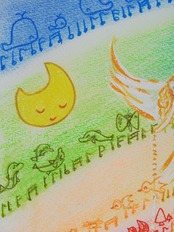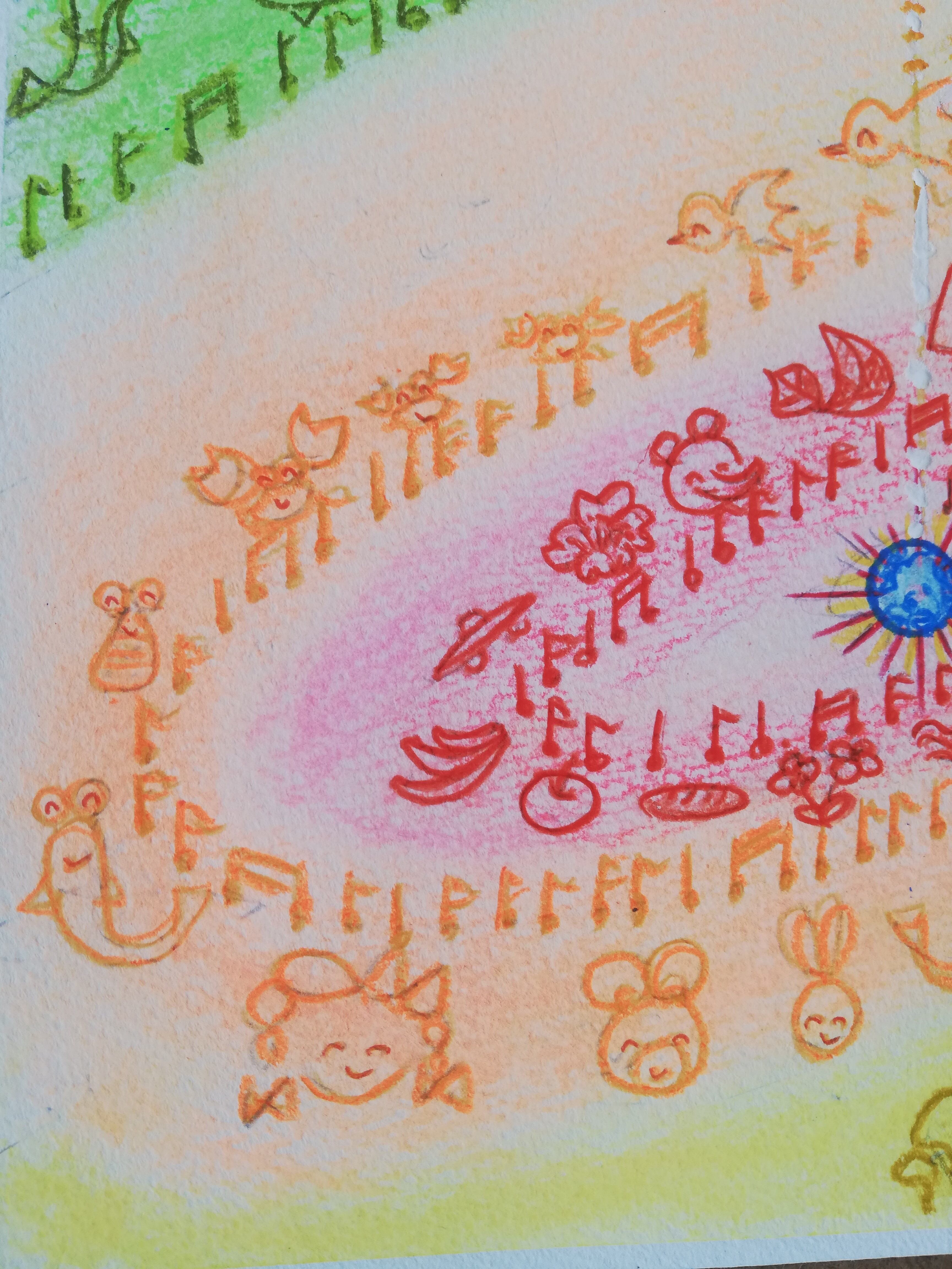 この絵は色鉛筆、パステル、ポスターカラーを使用しています。