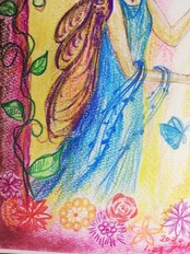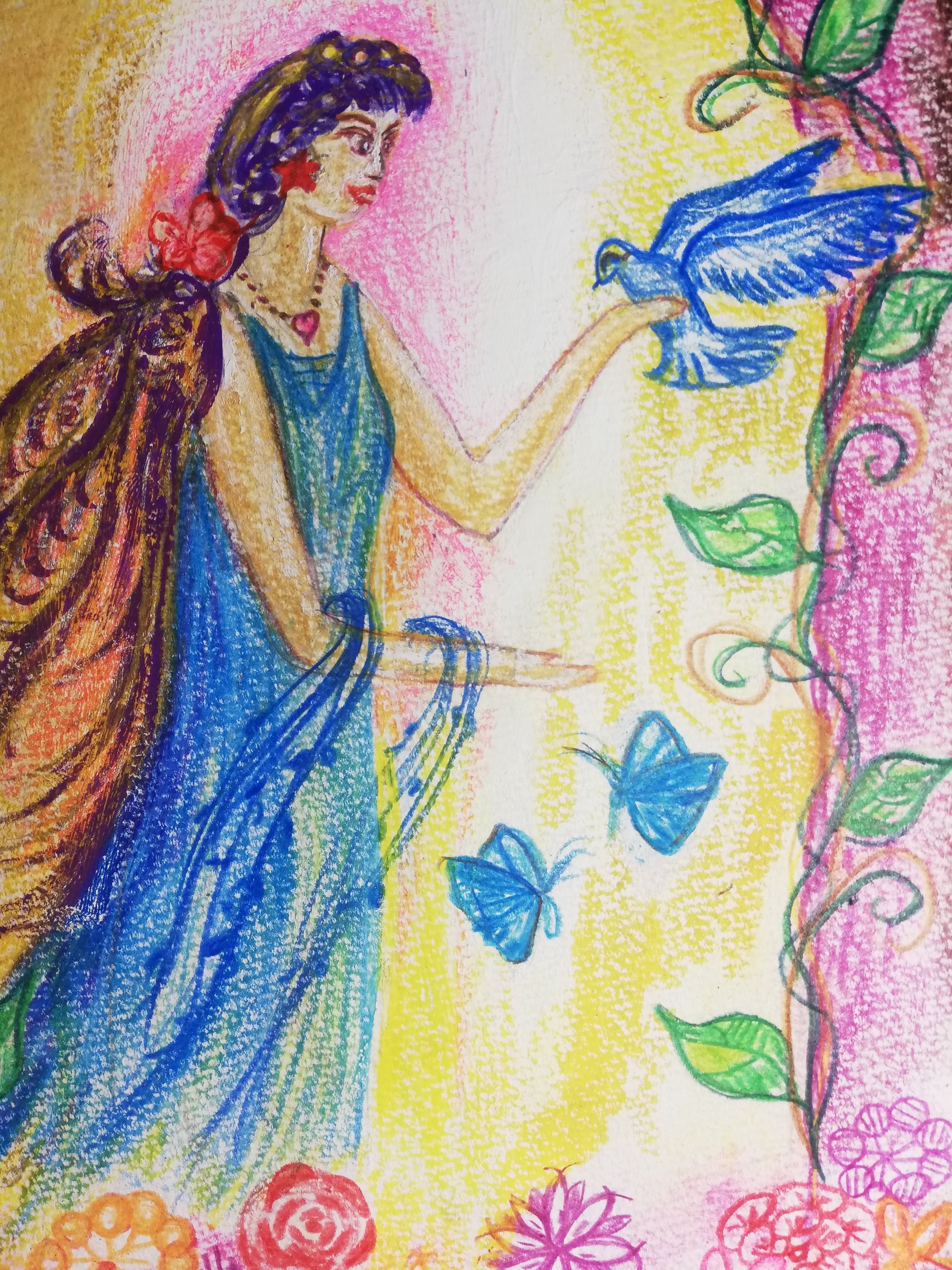 この絵は色鉛筆、パステル、ポスターカラーを使用しています。