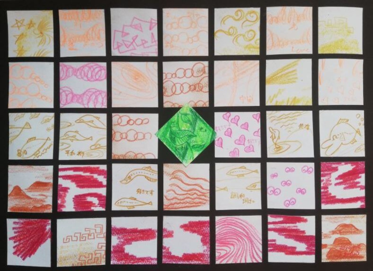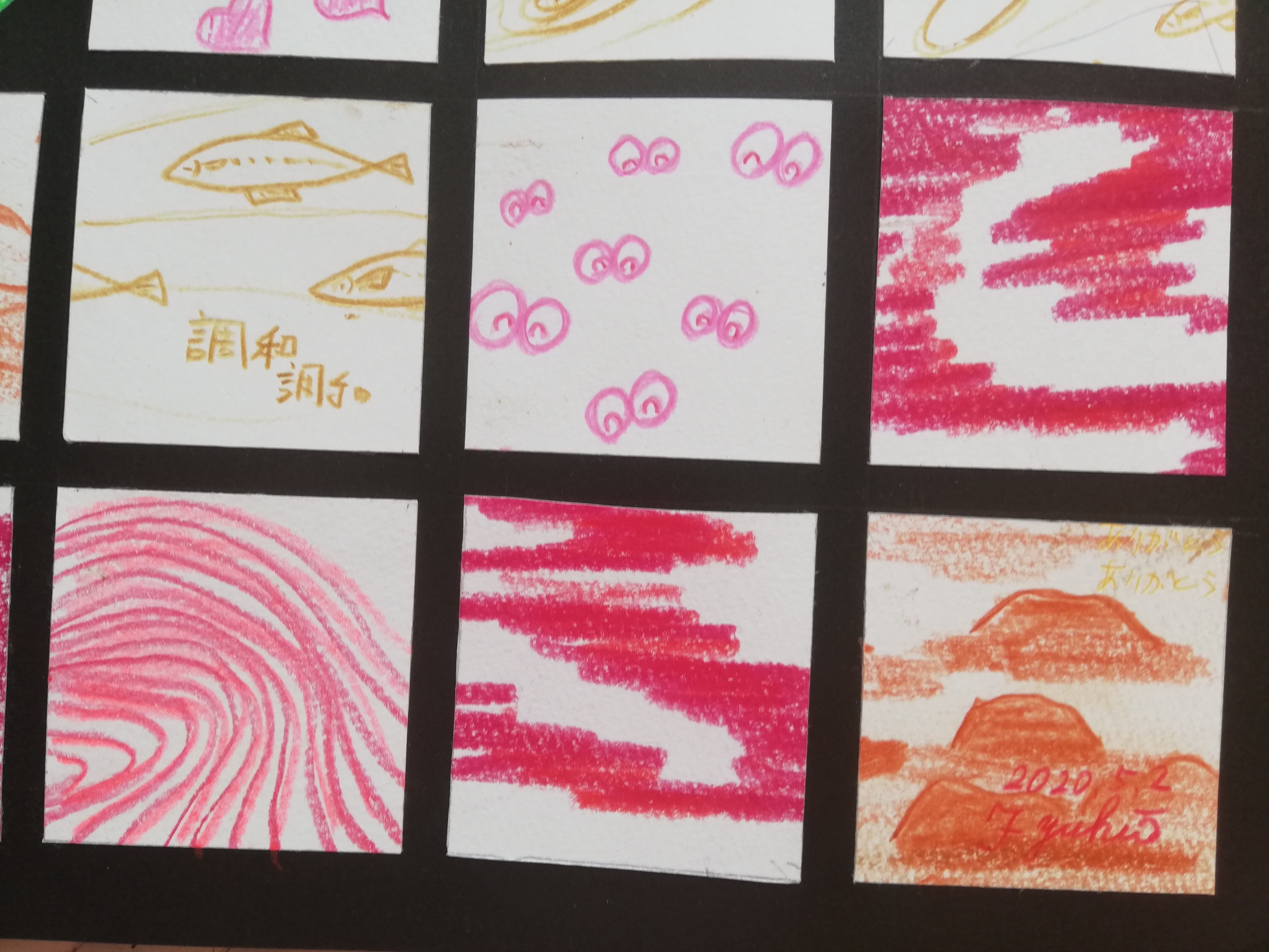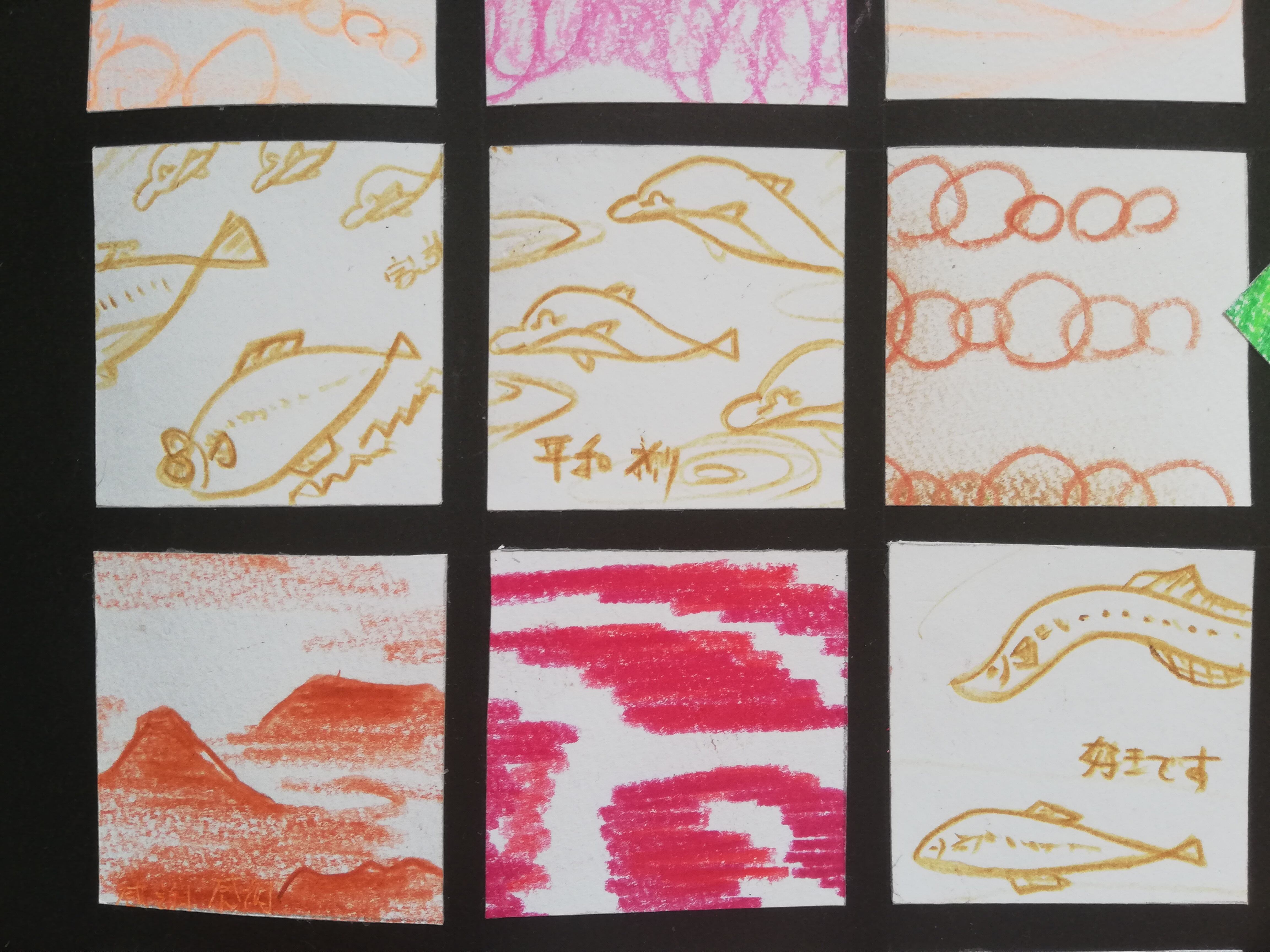 一枚5センチ角の絵は、一枚一枚完成された構図での絵で
