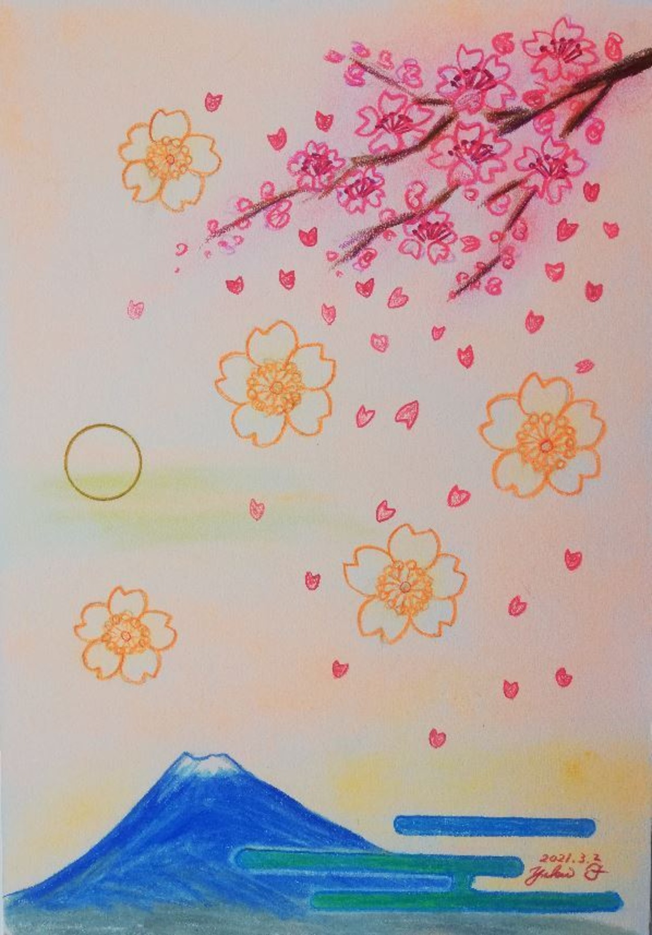 色鉛筆とパステル画です。